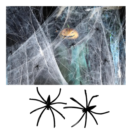 Tela De Araña Falsa + 2 Arañas Halloween Decoración Mas 8m