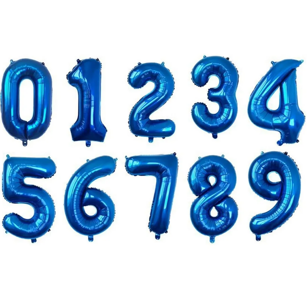 Globo Números Metalizados Azul De 16 ( 40 Centímetros )