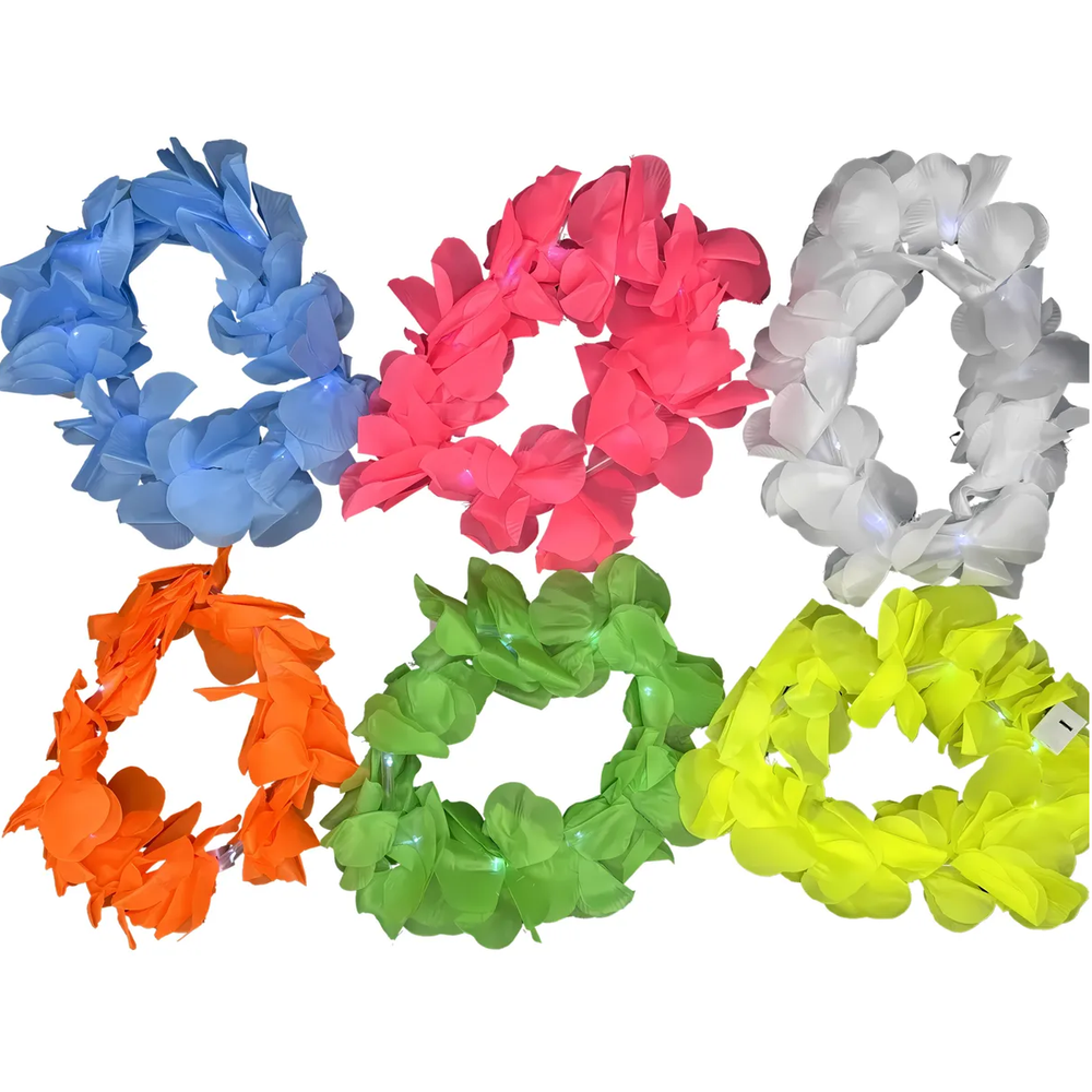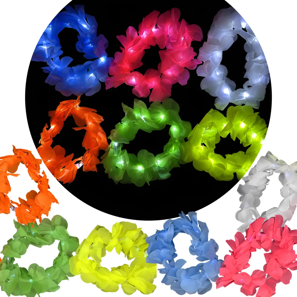 Pack 12 Coronas Hawaianas Led Luminosas Flores Surtidas