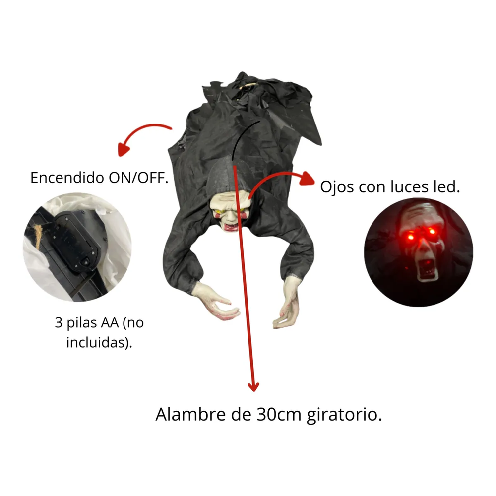 Zombie Colgante Led Sonido Giratorio Halloween Decoración