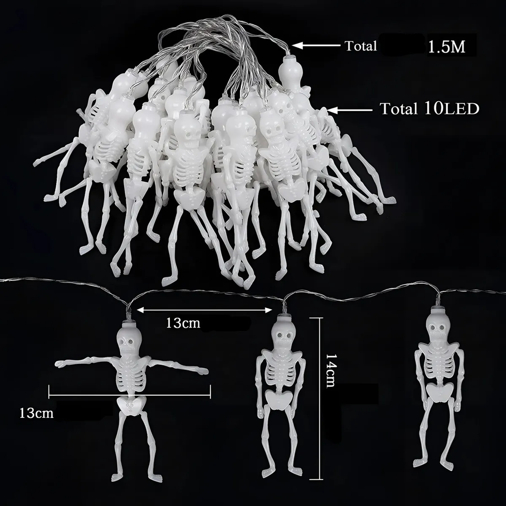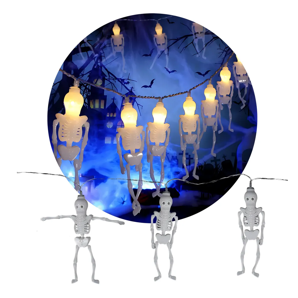 Guirnalda Esqueletos Led X10 Luces Halloween Pilas 1,5mts
