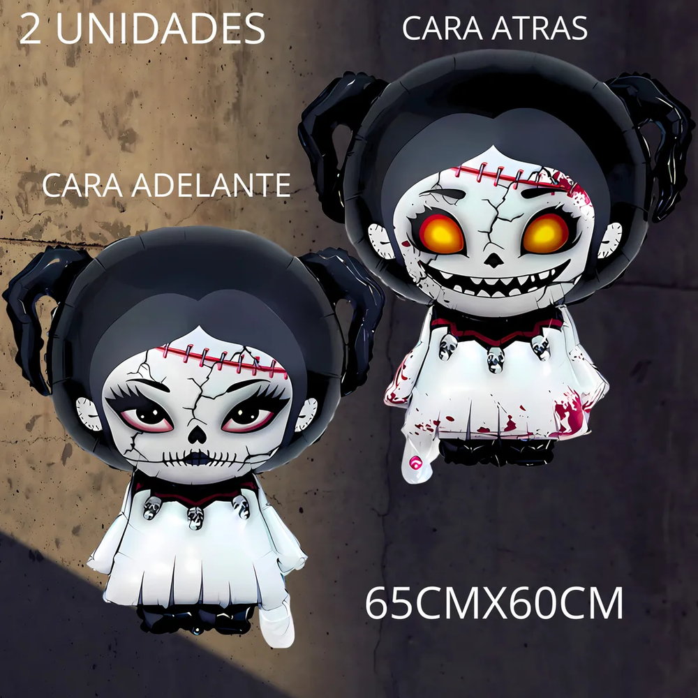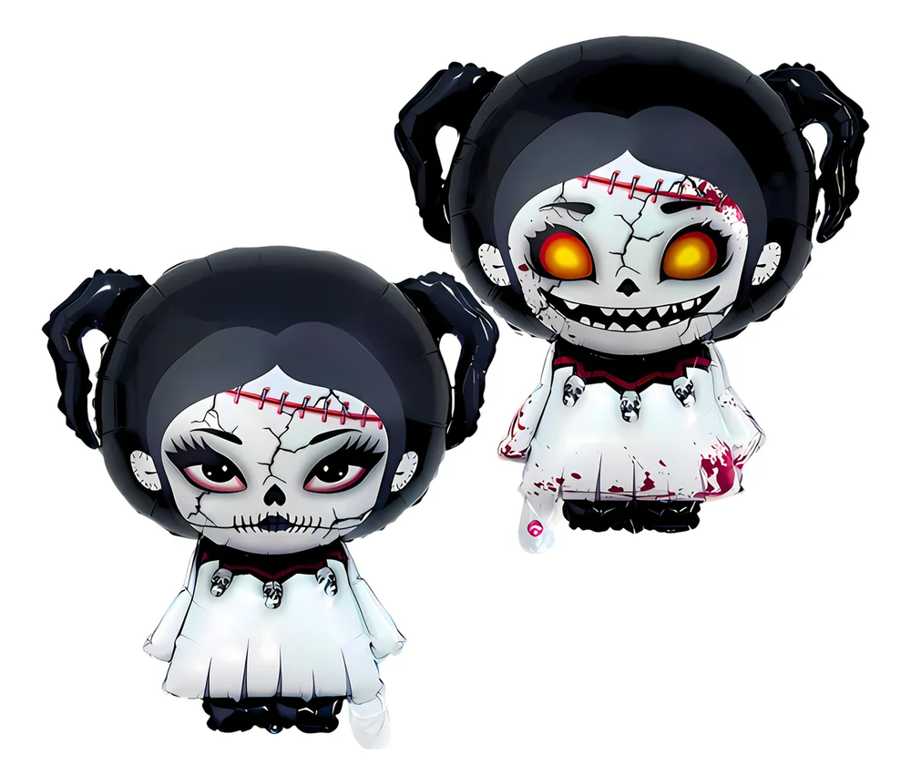 Niña Terror Halloween Metalizado 65cm Negro x1 Unidad