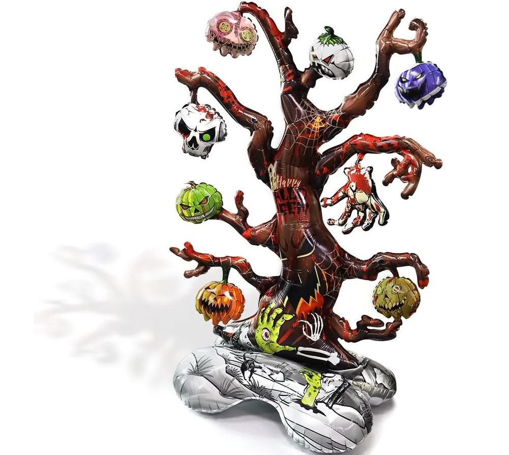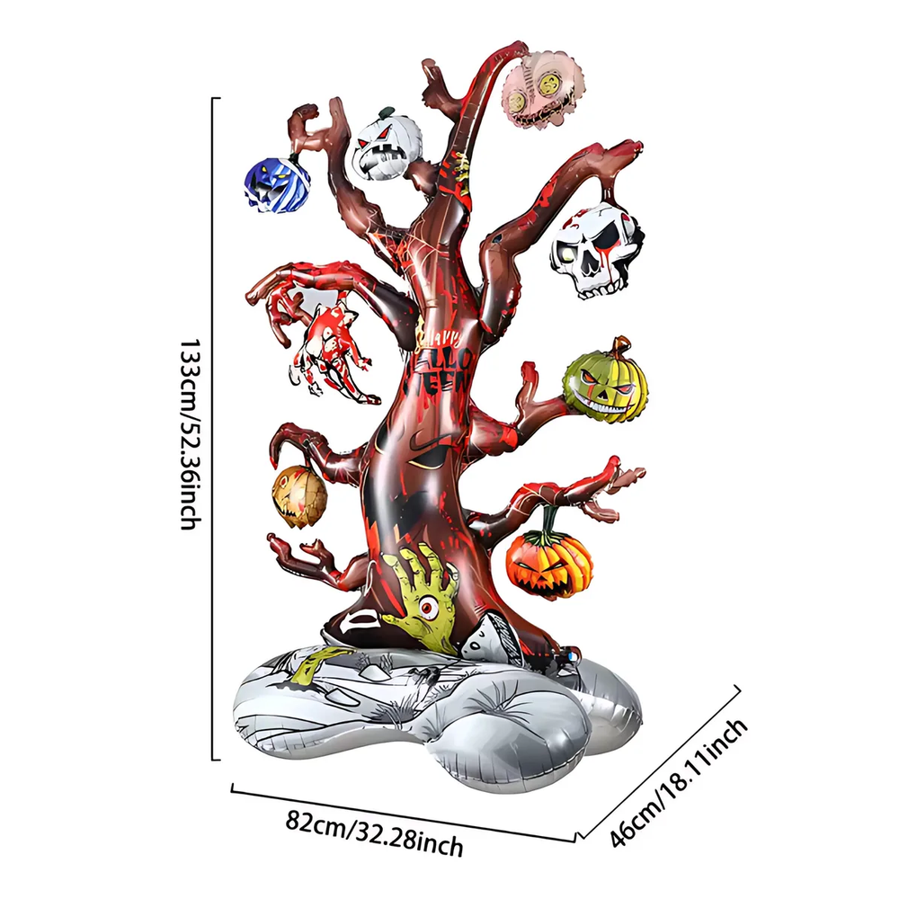 Globo Árbol Lápida Halloween Base Metalizado Gigante 137cm Marrón