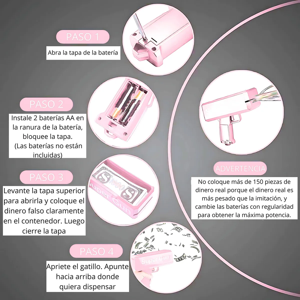 Pistola Lanza Billetes Máquina Dinero Colores Fajo 100 Unid.