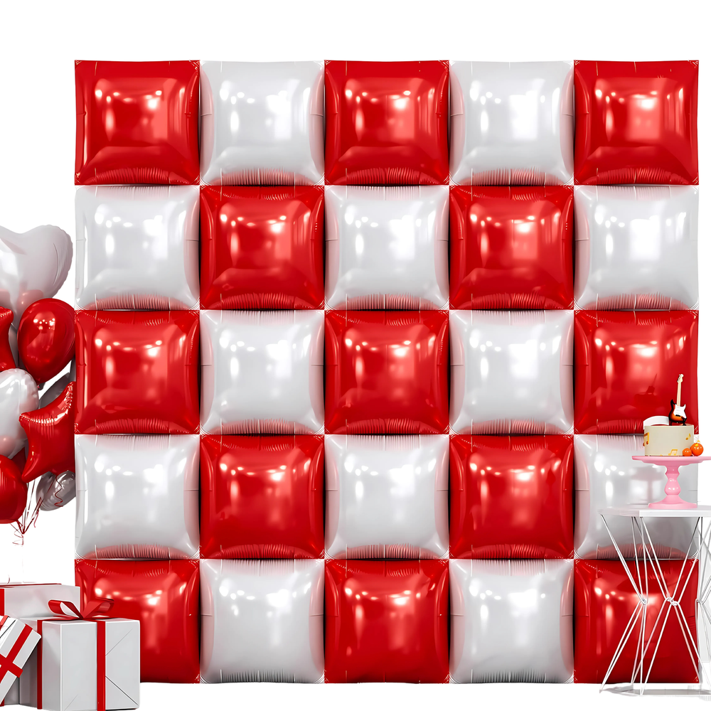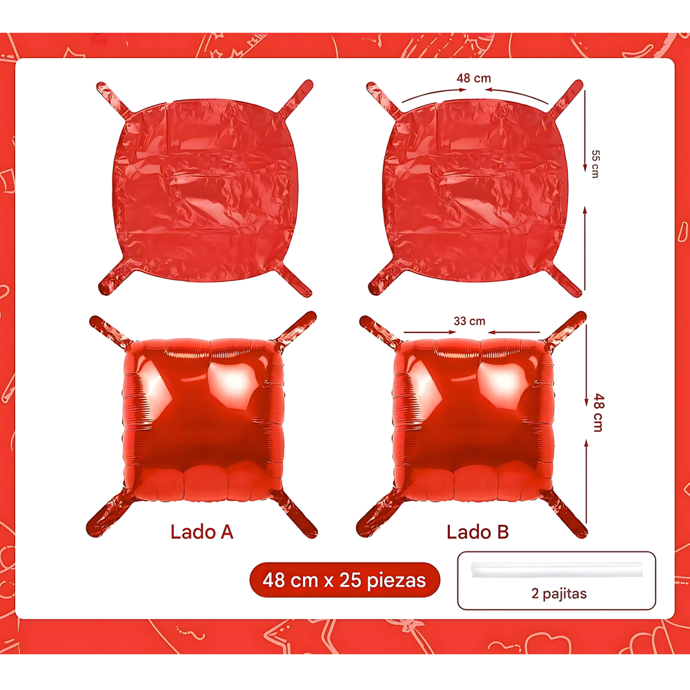 Pack 10 Globos Cuadrados Metalizado 45cm Decoracion Rojo/blanco