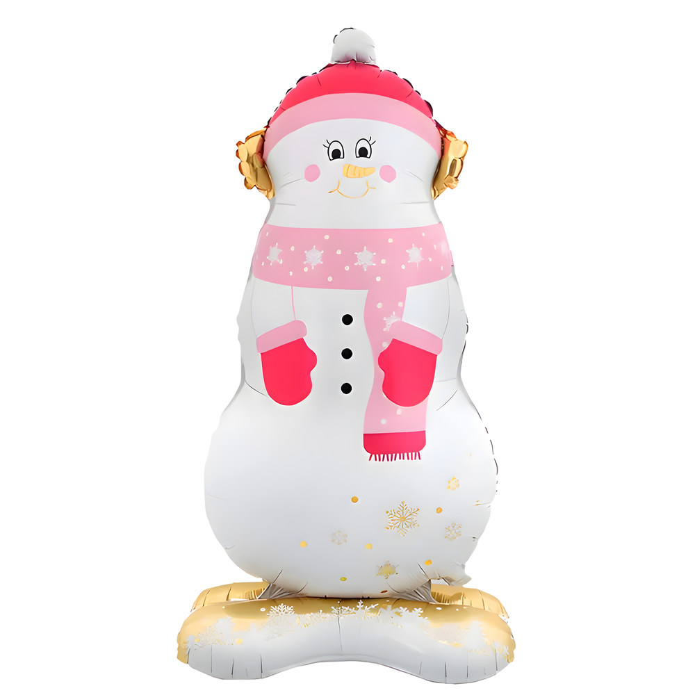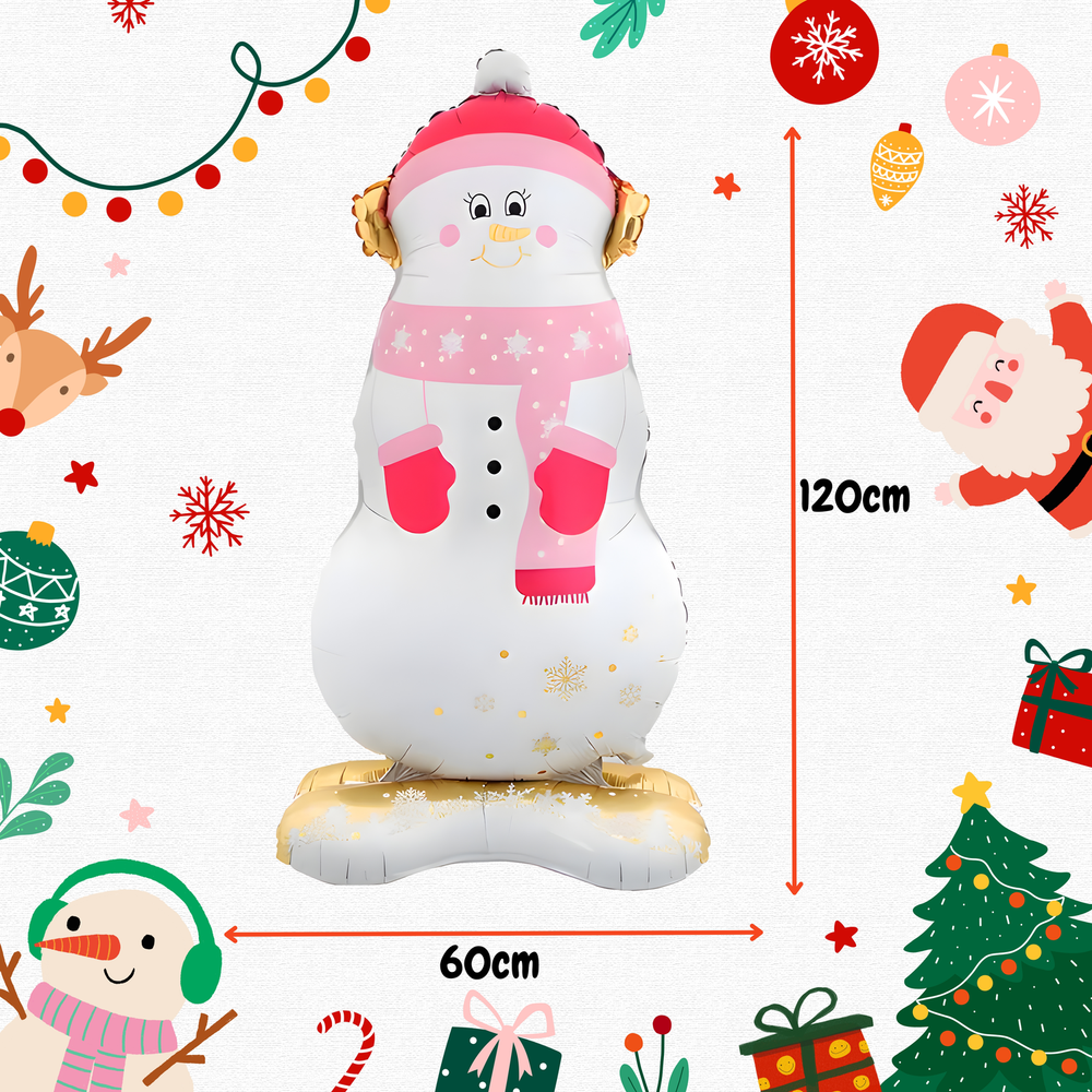 Muñeco Nieve Metaliz. Rosa Navidad Gigante Base 120cm - Blanco/rosa