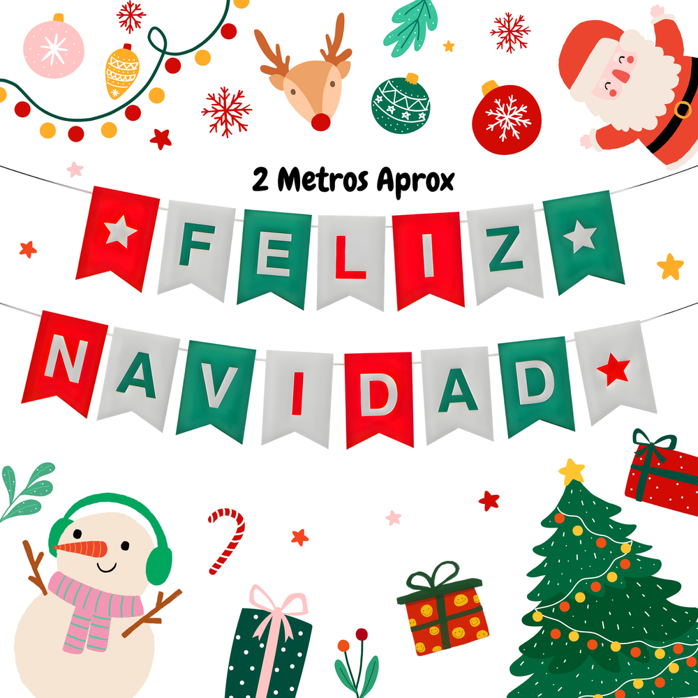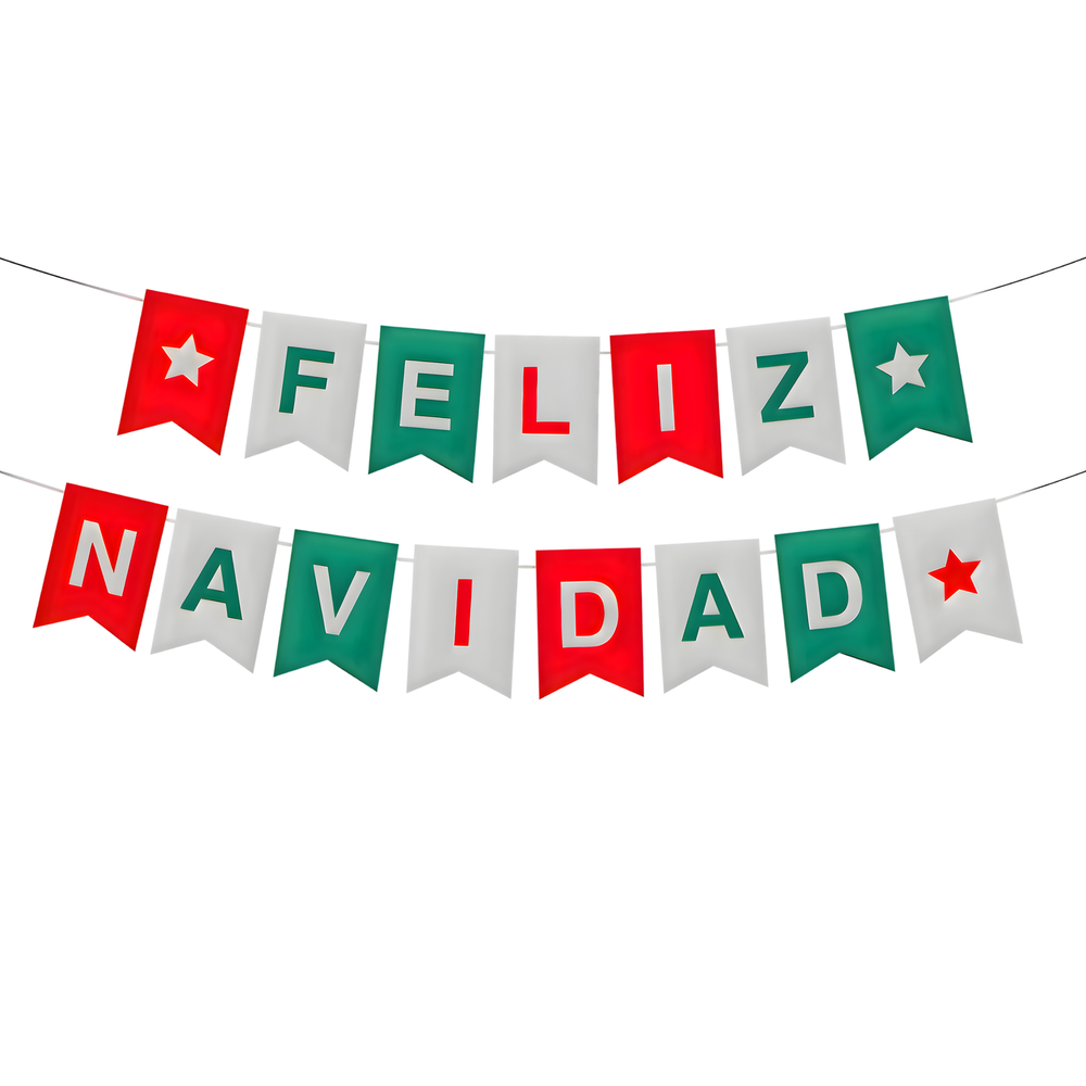 Banderín Feliz Navidad Rojo Verde Guirnalda Cartel Deco
