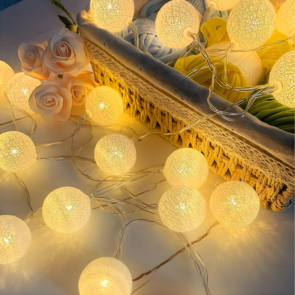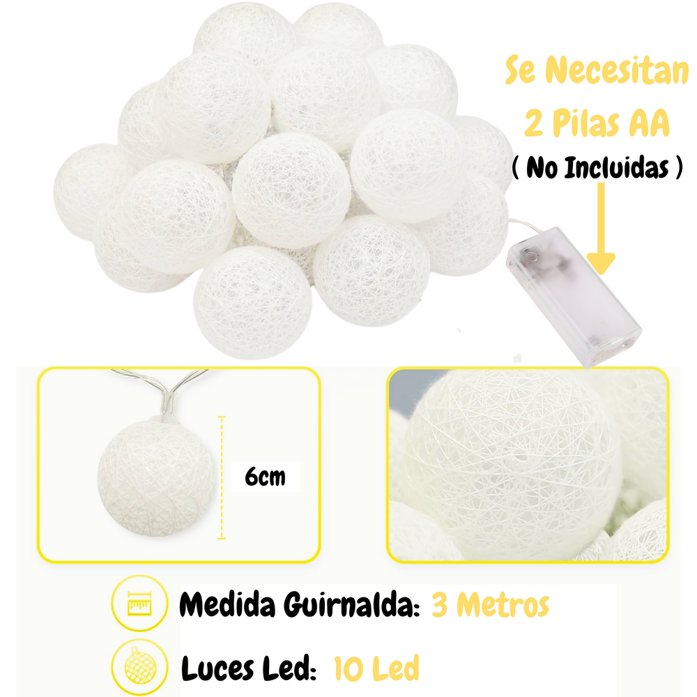 Tira Guirnalda 10 Bolas Esferas Luces Led Hilo Nido Navidad