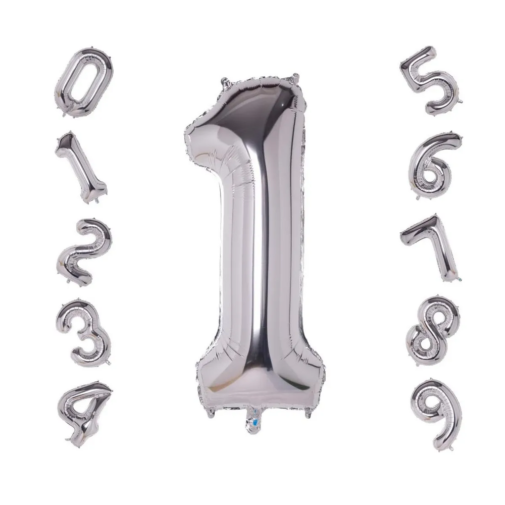 Globo Números Metalizados Plata De 16 ( 40 Centímetros )